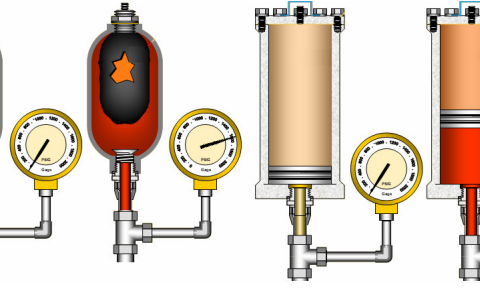 7.7 AKÜMÜLATÖR 1. Ağırlıklı Akümülatörler: Bu tür akümülatörlerde, ağırlık bir pistonu sıkıştırarak akümülatörü doldurur. Ağırlıklı akümülatörler genellikle eski sistemlerde kullanılır ve daha az yaygın hale gelmiştir. İşlemi otomatikleştirmek için ağırlıklı akümülatörler yerine pistonlu veya diyaframlı akümülatörler tercih edilir. 2. Yaylı Akümülatörler: Bu