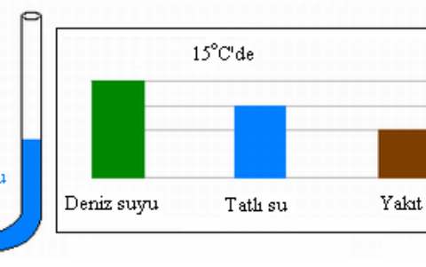 10.2.3.1 Yoğunluk U Tüpü (Bileşik Kaplar) İle Denge: Yakıt ve su örneği ile U tüpü kullanarak yoğunluklarına göre denge oluşturulur. U tüpünde, su ve yakıt ağırlıklarına göre bir denge kurarlar. Bu denge, yoğunluğu daha fazla olan suyun seviyesinin daha düşük, yoğunluğu daha