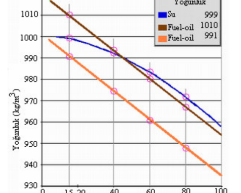 10.2.3.4 Sıcaklık ve Yoğunluk Sıcaklık ve Yoğunluk İlişkisi: Yakıtlar ve Yağlama Yağları Üzerindeki Etkileri Sıcaklık, yakıt, yağlama yağları ve su gibi maddelerin yoğunluğunu etkileyen önemli bir faktördür. Bu etki, yoğunlukla sıcaklık arasındaki ilişkiyi gösteren Şekil 10.24’te görülebilir. İşte bu konu hakkında daha