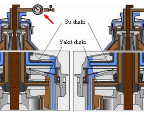 10.7.7.3 Su ve Yağ veya Yakıt Diski (Pompası) Su ve yakıt diskleri, ayrıştırıcının temel işlevlerinden biri olan ayrıştırılmış yakıt veya yağ ile suyun ayrıştırıcıdan dışarı pompalanmasını sağlar. Bu işlem, eskiden yatay bir şaft veya dişli kutusu ile çalışan bir dişli pompa ile