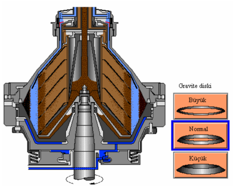 10.7.7.4 Gravite (Ağırlık) Diski Gravite diski, ayrıştırıcılarda oldukça önemli bir rol oynar ve ayrıştırma işlemi sırasında ara yüzeyi ayarlayarak su çıkışını kontrol etmek için kullanılan halka şeklinde bir bileşendir. Üst çanak (çanak başlığı) üzerine monte edilir ve küçük bir kilit halkası ile